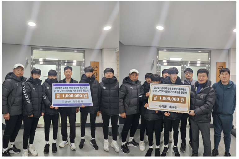 장영문 단장은 “금석배 대회에서 홈 팀인 U15군산시민축구단의 선전을 기원하고자 후원금을 전달하게 됐다”라며, “올 시즌에도 금석배 도시 축구부로서 멋진 활약을 펼치길 바란다”라고 전했다.