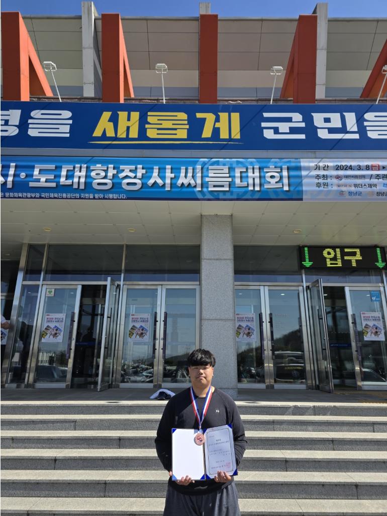 진용찬 선수(호원대 스포츠무도학과 2학년)는 지난 8~9일 이틀간 경상남도 창녕군 창녕군민체육관에서 열린 제38회 전국시‧도대항장사씨름대회에 참가해 대학부 개인전 장사급(-140kg) 체급에서 동메달을 목에 걸었다.