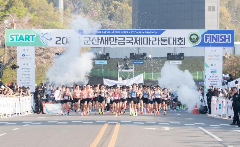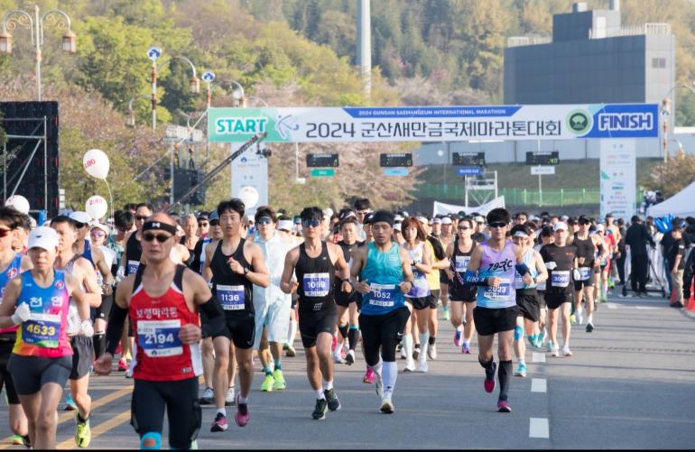 따뜻하고 화창한 봄날, 군산시 대표 스포츠 축제인 ‘2024 군산 새만금 국제 마라톤 대회’가 14일 월명종합경기장 일원에서 성황리에 개최됐다.