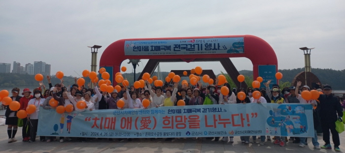 군산시치매안심센터는 26일 오전 9시부터 12시까지 은파호수공원 물빛다리 광장 일대에서 ‘한마음 치매극복 걷기 행사’를 성황리에 개최했다.
