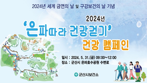군산시 보건소가 이달 31일 은파호수공원 수변로에서 제37회 세계 금연의 날과 제79회 구강 보건의 날을 기념, ‘은파따라 건강걷기’ 건강증진사업 통합 캠페인을 실시한다.