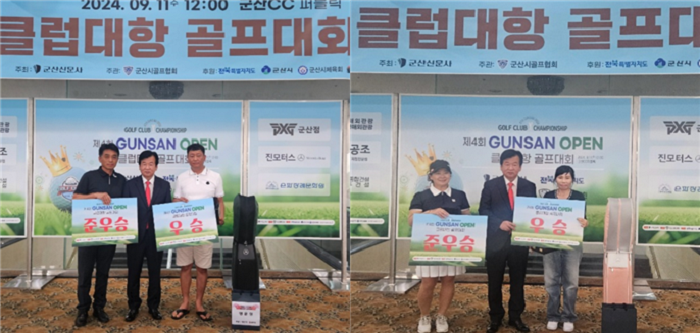 군산신문사(회장 고진곤)와 군산시골프협회(회장 양재석)가 주최‧주관, 전북특별자치도와 군산시, 군산시체육회, 군산컨트리클럽이 후원한 ‘제4회 군산오픈 클럽대항 골프대회’가 이날 낮 12시 군산CC 퍼블릭코스에서 성황리 개최됐다.
