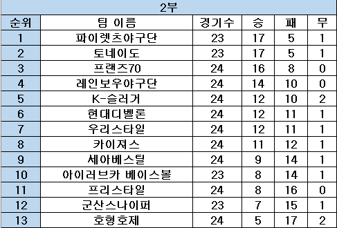 B조 호형호제는 홍의리의 투런 홈런과 후반 뒷심을 발휘했음에도 불구하고 카이져스에 10대11로 패했다.
