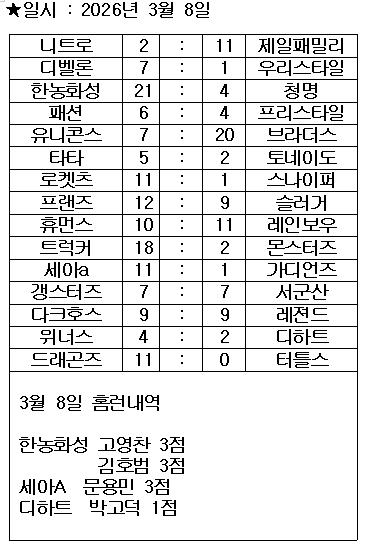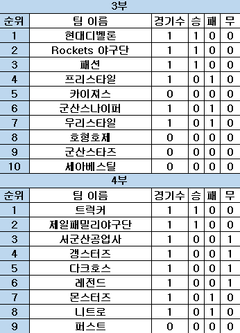 D조에 속한 신생팀 갱스터즈는 이날 경기에서 팀명을 변경한 서군산공업사(전 매드독스)를 상대로 3회까지 5대 3으로 우위를 점했다.