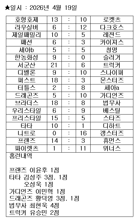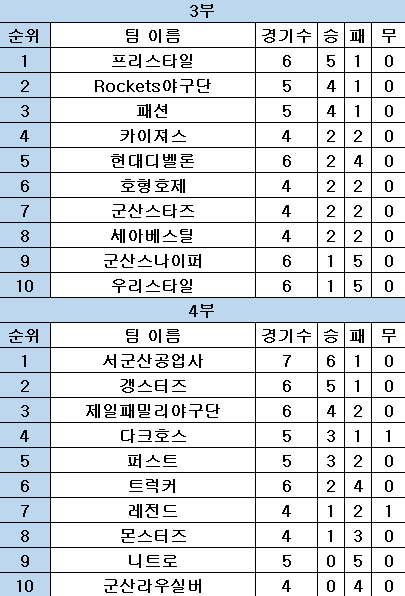 D조 서군산공업사는 폭발한 팀 타선 덕에 무려 6회에만 14점을 획득했고 총 21점으로 1위 자리를 굳건하게 지킬 수 있었다.